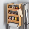 Optimiza el espacio al lado de tu refrigerador con el Organi Refri Bambú Betterware. Esta solución cuenta con 3 repisas para organizar y acceder fácilmente a tus condimentos, 2 ganchos laterales para secador o trapo y un tubo para rollos que puedes utilizar para servitoallas, aluminio, plástico o bolsas. Su diseño de bambú le brinda un toque elegante a tu cocina. Instalación con ventosas.