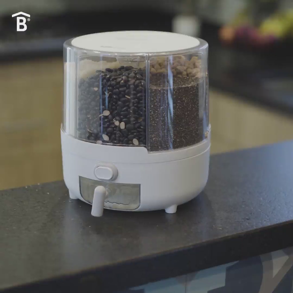 Conserva, organiza y dispensa tus leguminosas, pastas, semillas y más en un mismo lugar con el Multi Dispensador Betterware. Esta solución de organización para tu cocina cuenta con 6 compartimentos de 800 ml cada uno para organizar con ventanas transparentes para identificar, sistema giratorio y botón para fácil dispensado. Además, podrás dispensar en su compartimento medidor integrado.