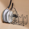Maximiza los espacios en tus gabinetes con el Organi Sartenes y Tapas Black Betterware. Este organizador de metal con gran soporte cuenta con 2 espacios anchos para sartenes grandes y 6 espacios más pequeños para tapas y sartenes delgados.